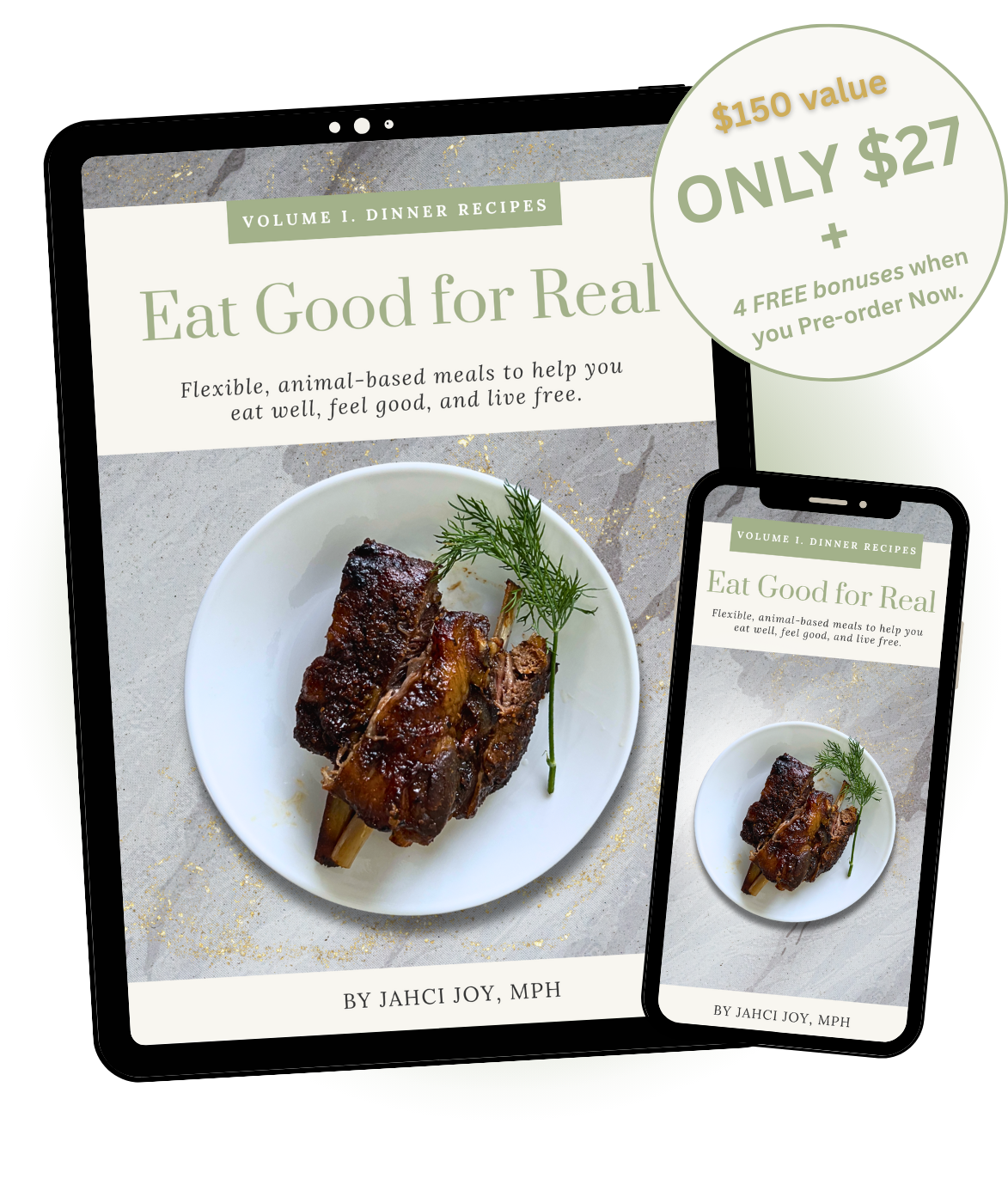 Hi, I'm Jahci! I made this cookbook for women like us who want to feel good in our bodies without dieting confusion or giving up hearty meals. I believe in intentional eating, lots of seasoning, and choosing real nourishment without the pressure of a strict diet. This isn't about extremes. It's about sustainable health, real food, and a rhythm you can actually live with from sun up to sundown.